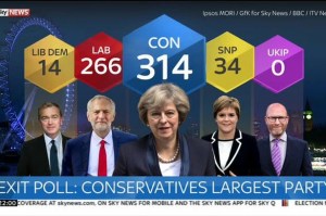 Just to give you some indication of how difficult the arithmetic will be if the exit poll is right, the Conservatives have 314 seats, the Northern Irish Democratic Unionist Party are predicted to have up to 10 seats. If you put those together it makes 324 and that is enough for a tiny majority, because the target is 323 seats given Sinn Fein won’t take their seats.